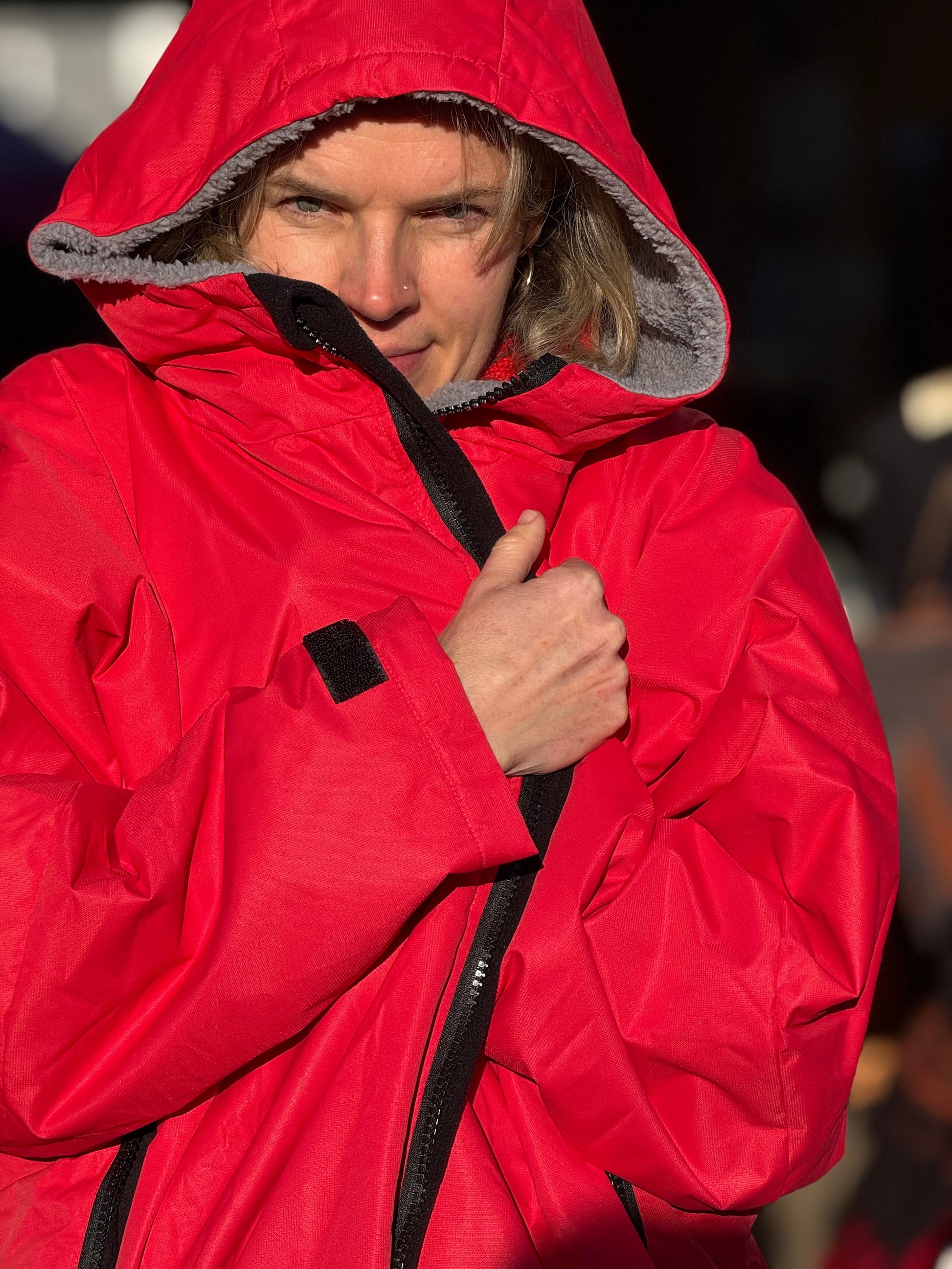 This fleece-lined waterproof coat is built for people who spend time outside in winter — not just passing through it. Whether you’re walking dogs in the rain, standing at the edge of a pitch, or keeping warm after swimming or surfing, the long length and insulated lining help keep the cold out and the warmth in.